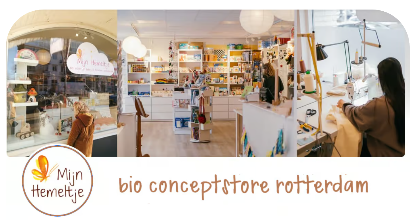Discover the world of Mijn Hemeltje, where natural beauty and sustainability have been combined for over 15 years. In our organic concept store in Rotterdam, you’ll find the most beautiful organic children’s clothing and sustainable products for the whole family. We believe that choosing natural materials is not only best for your baby, but also for the world they’re growing up in. Come visit and be enchanted by purity and authenticity.